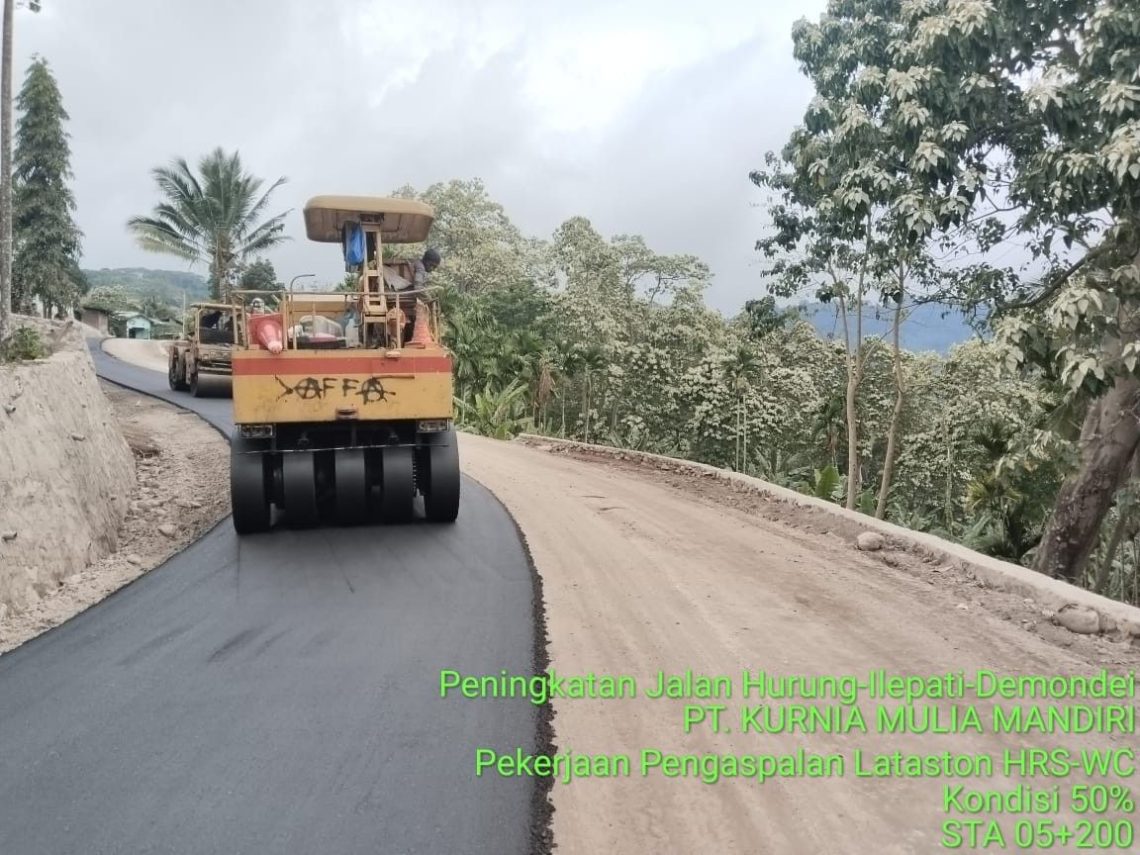 SUARA deru mesin finisher berpadu dengan dentuman aspal panas yang digelar di atas jalan. Asap tipis mengepul di udara, menandai semangat para pekerja yang terus berjibaku di bawah terik matahari. Di segmen Hurung–Ile Pati hingga Demon Dei, Pulau Adonara, proyek pembangunan jalan hotmiks terus dikebut.