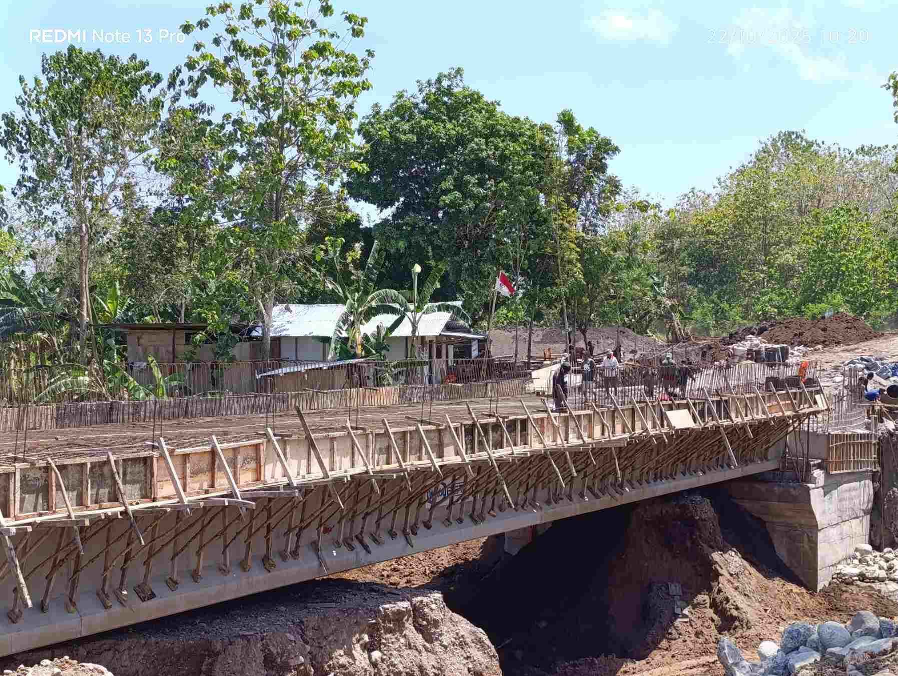 PROYEK pembangunan Jembatan Beliko di Pulau Adonara, Kabupaten Flores Timur, terus menunjukkan progres positif.